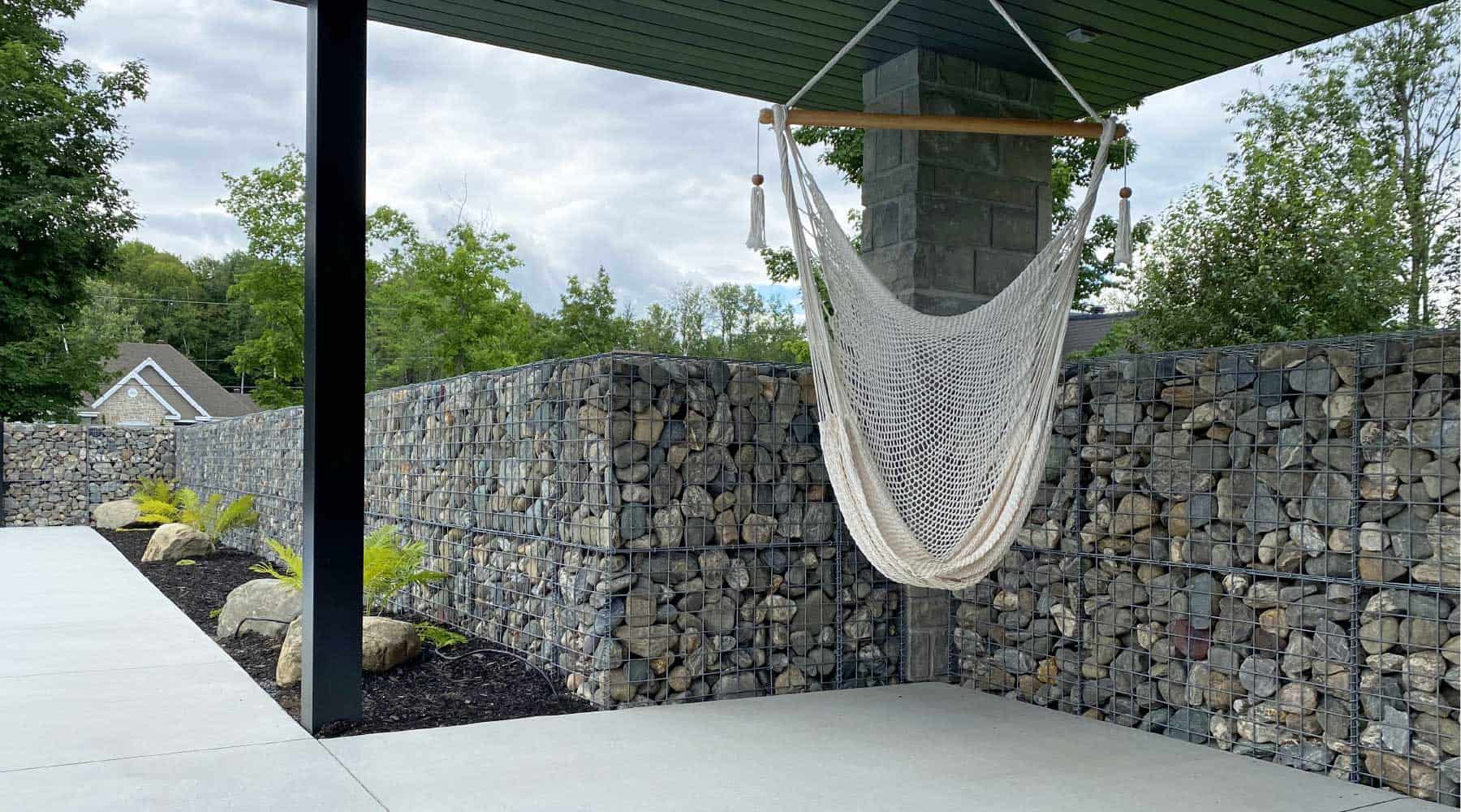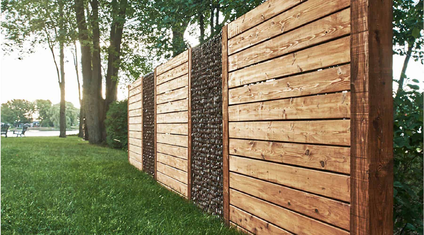 Dans cette réalisation, 2 types de matériaux comme le bois et le gabion ont été utilisés pour un résultat magnifique. Cette combinaison donne un aspect à la fois rustique et moderne à votre mur d’intimité.