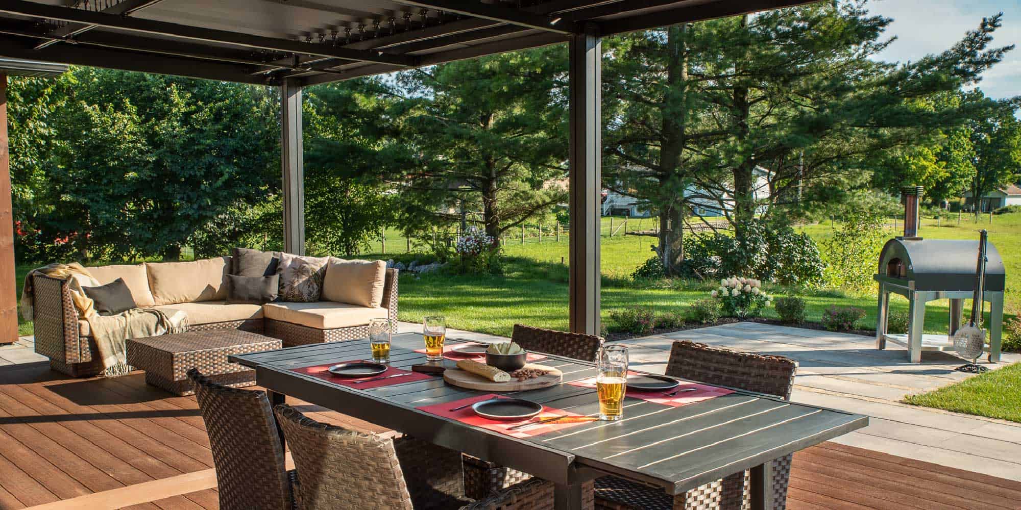 Au Québec, nous avons la chance de vivre quatre magnifiques saisons qui ont chacune leurs particularités. Notre paysage change de manière importante au fil des jours qui passent; c’est une énorme richesse. Même si on apprécie les changements que ces transitions apportent, il n’en demeure pas moins que l’été dans notre belle province est plutôt court. Heureusement, grâce à l’ingéniosité de nos Maîtres Paysagistes, il existe de nombreuses manières de prolonger les soirées et, à plus forte raison, l’été lui-même!