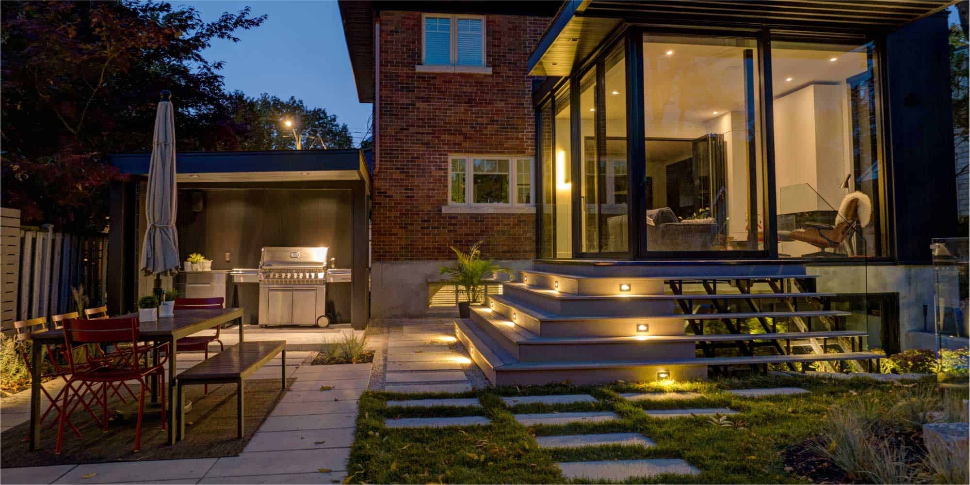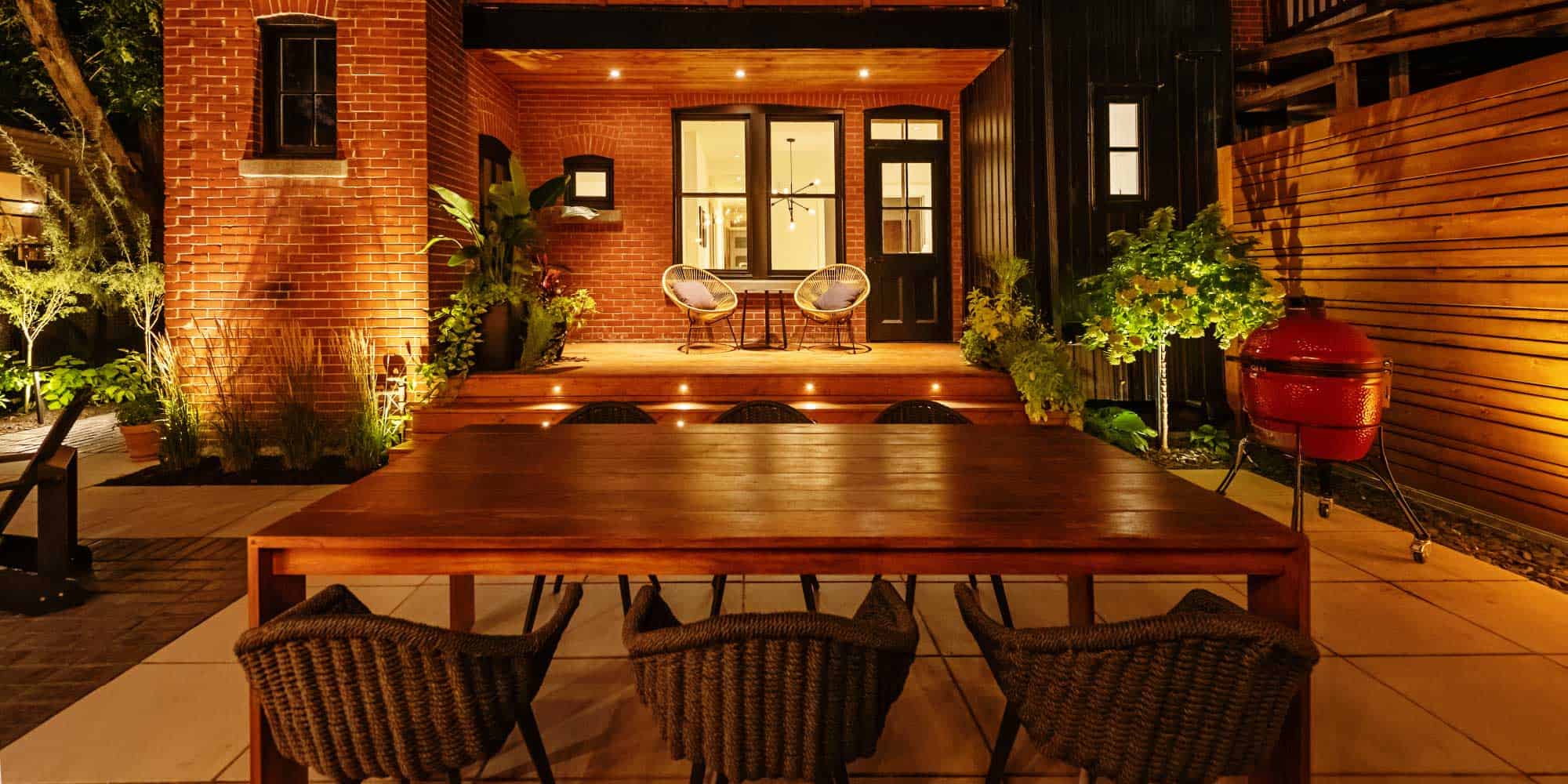 L’ajout d’éclairage d’appoint permet également d’installer une belle ambiance feutrée qui donne envie d’étirer le temps sur une terrasse fonctionnelle et tellement agréable.