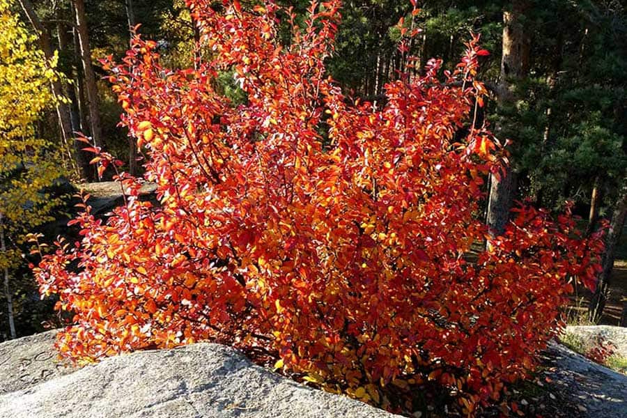 En plus de produire des petits fruits noirs comestibles dont les oiseaux raffolent, l’amélanchier est un magnifique arbre fruitier indigène au port étroit dont le feuillage vire au jaune-orangé à l’automne.