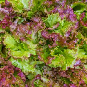 La laitue frisée qui, avec ses différents coloris du vert clair au rouge foncé, peut créer des mosaïques fort intéressantes.