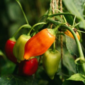 Les piments, dont les plants compacts et denses produisent une multitude de fruits souvent de différentes couleurs sur une même plante.