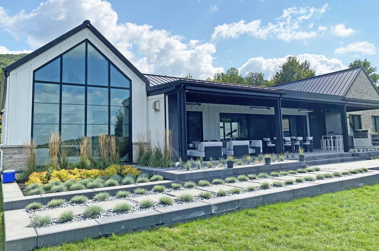 Il faut dire que le décor naturel est inspirant. NaturArt réalise des projets dans le magnifique panorama des Cantons-de-l’Est, plus précisément autour du lac Memphrémagog, à Lac-Brome, Granby, Sutton et Frelighsburg. Comme chaque terrain est différent, l’idée est d’intégrer le plus d’éléments naturels possible. Par exemple, s’il y a une forêt à proximité, des rochers, un ruisseau et des arbres sur le terrain, dans la mesure du possible, tout sera conservé et magnifié par le design proposé. Le relief et les caractéristiques du sol seront évalués afin de proposer un design intégré à la nature et durable. Le défi est de conserver la beauté naturelle tout en s’inspirant de l’architecture de la demeure. Prolonger la vie intérieure vers l’extérieur afin que les propriétaires puissent vraiment profiter de leur cour est l’objectif ultime.