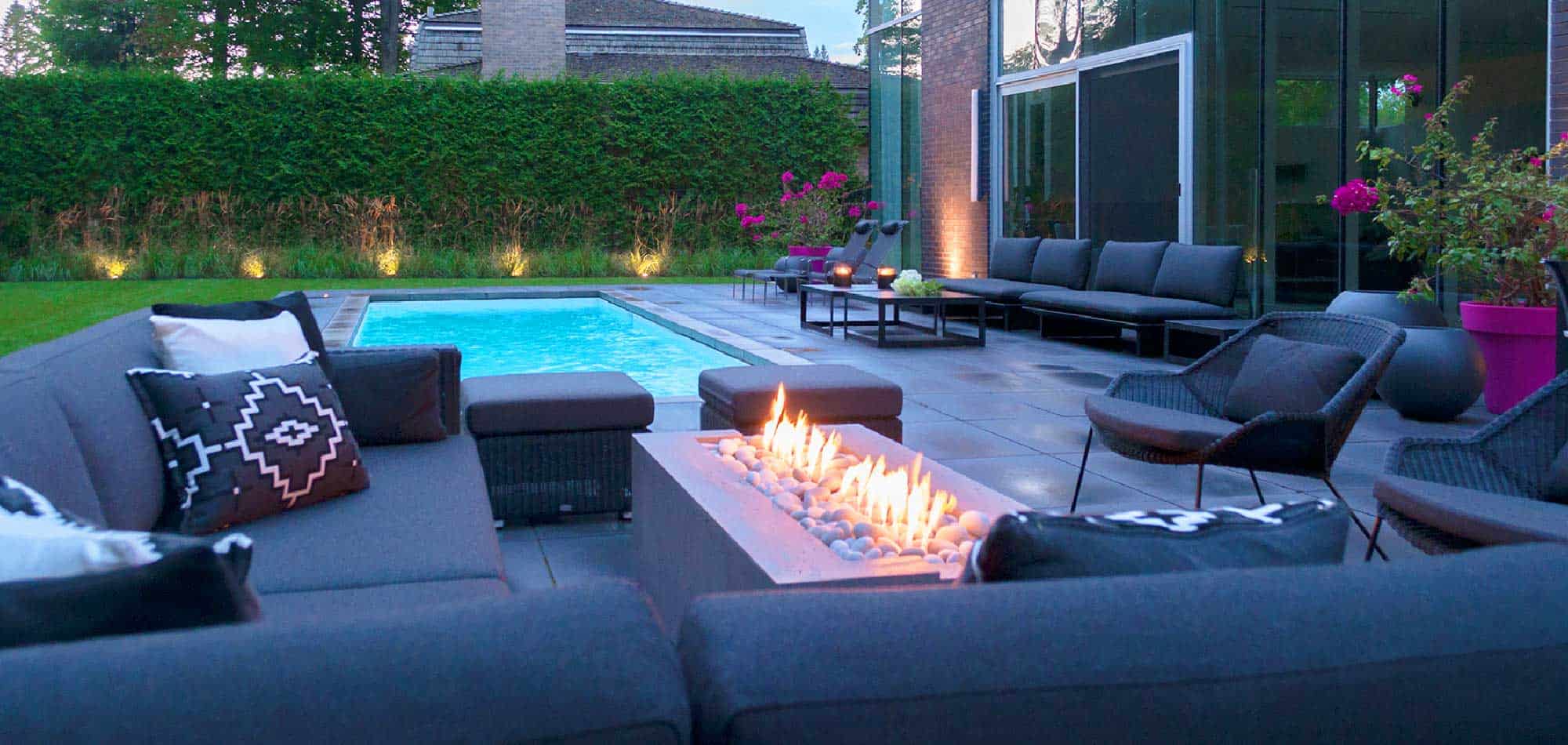 Tous les projets de cette envergure comportent leur lot de casse-têtes. Ici, il fallait passer différentes tuyauteries : le propane, l’eau et l’électricité, en calculant chaque centimètre. C’est là où le savoir-faire monumental des Maîtres Paysagistes prend tout son sens. Encore plus lorsque le terrain réserve des surprises comme la présence d’une veine d’eau découverte lors de l’excavation de la piscine. Une excavation supplémentaire de 7 pieds sur toute la surface des travaux a donc dû être réalisée. L’Équipe de Brisson Paysagiste a su s’adapter et proposer un projet qui dépasse les attentes des clients.