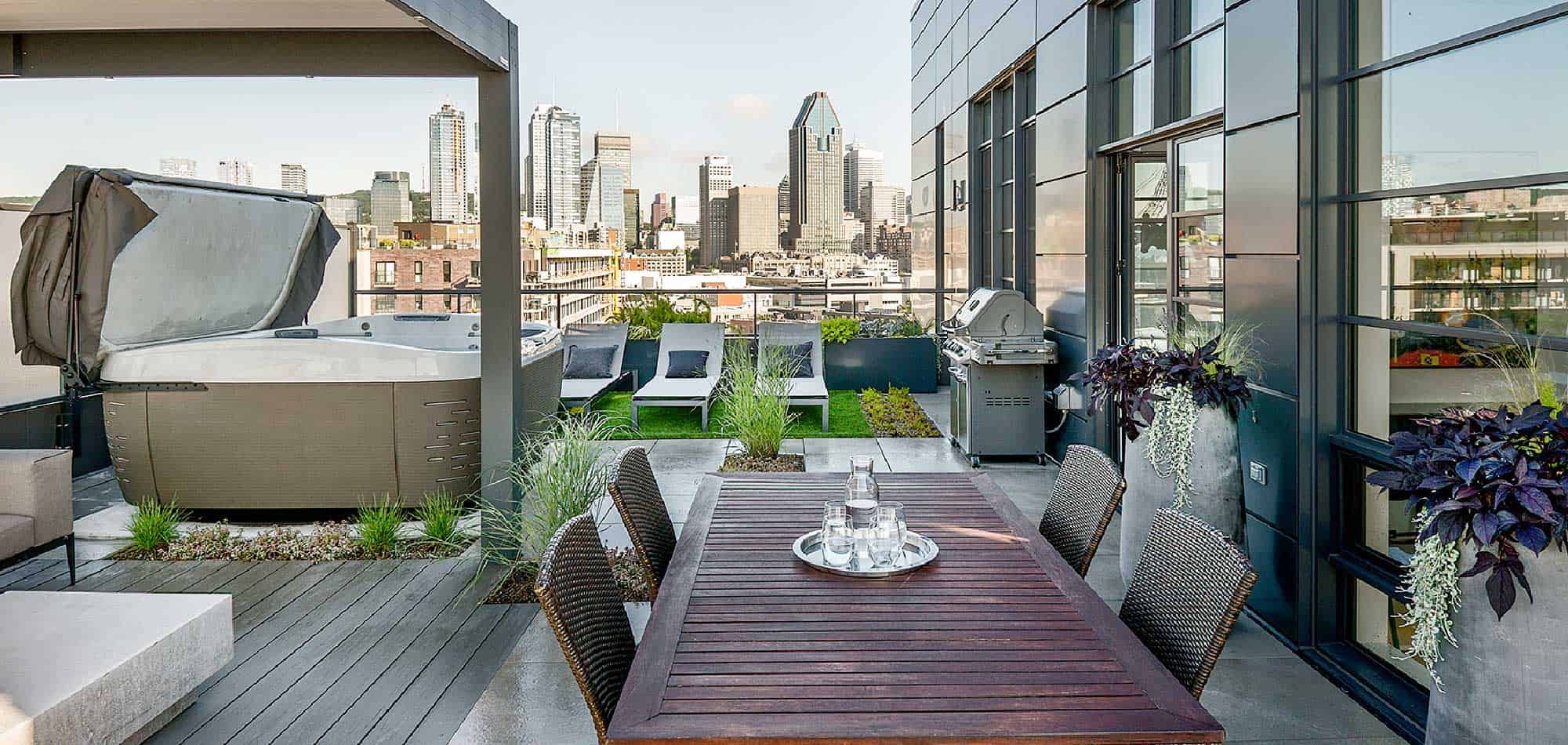 L’aménagement d’une terrasse sur un toit comporte plusieurs enjeux dont le poids des matériaux et des meubles, la plantation des végétaux et la sécurité. Tout a été mis en place pour que cet aménagement, qui porte merveilleusement bien son nom, puisse offrir un espace urbain optimisé, convivial et intemporel hors du commun.